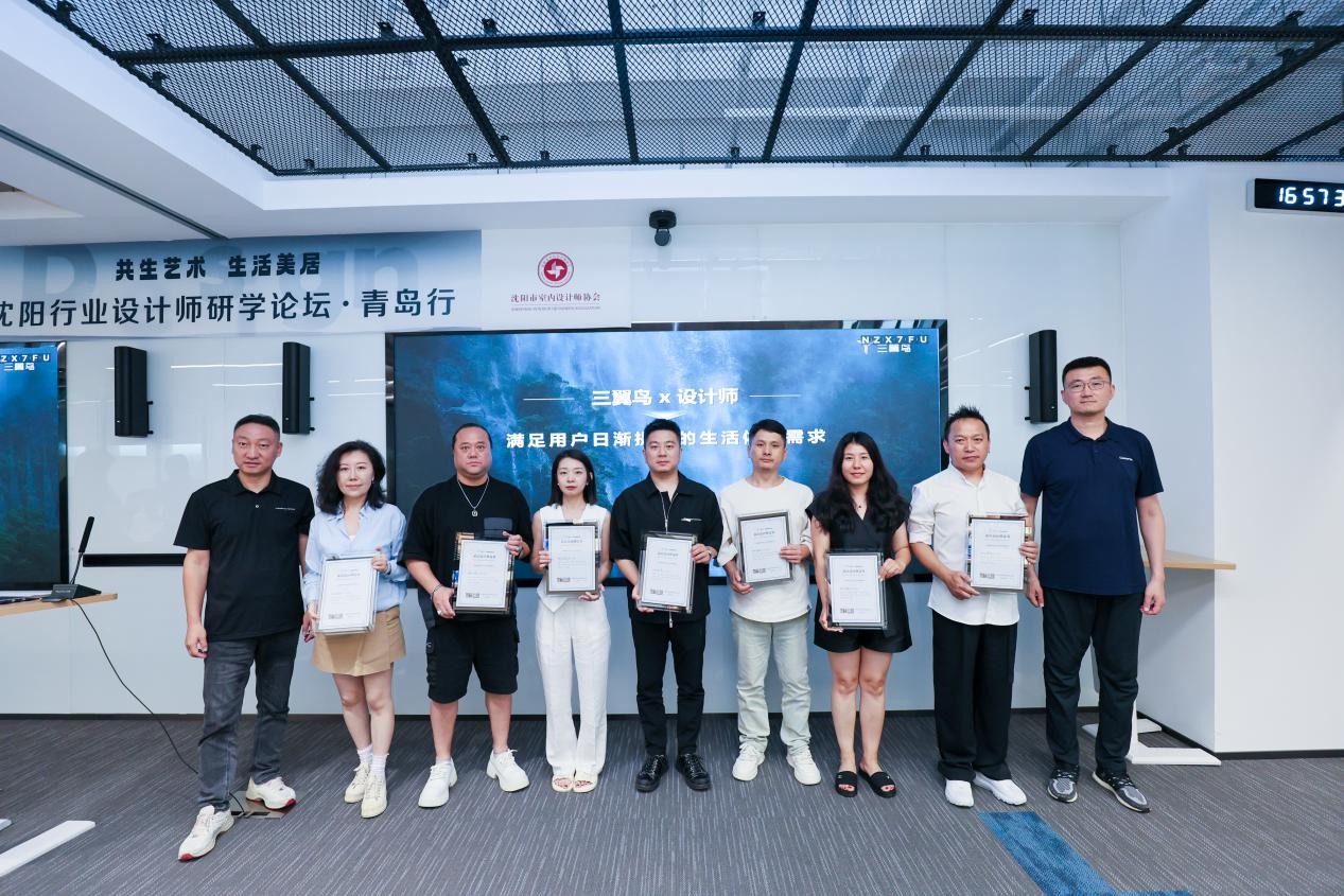 为了让设计师更好的服务用户,8月8日,以“共生艺术 生活美居”为主题的三翼鸟黑标设计师·青岛&沈阳论坛研学会在青岛正式召开,来自沈阳市室内设计协会的二十余名设计师与三翼鸟共同探讨智慧家电家居一体化的定制方案。在现场,三翼鸟还与设计师们达成了专属合作,并进行“黑标设计师”授牌,就共创场景方案展开深度合作,共同为用户创造美好生活。