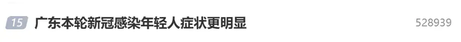 8月15日上午,话题“广东本轮新冠感染年轻人症状更明显”登上微博热搜。
