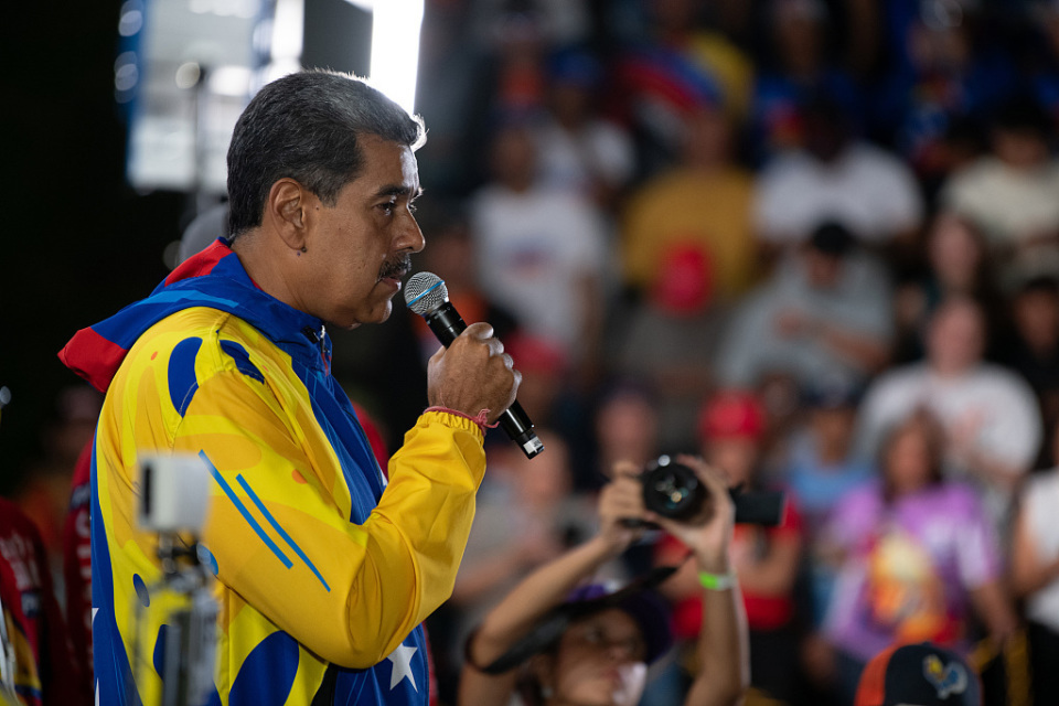 当地时间2024年7月28日,委内瑞拉加拉加斯,委内瑞拉总统马杜罗赢得总统选举后发表讲话。(视觉中国)