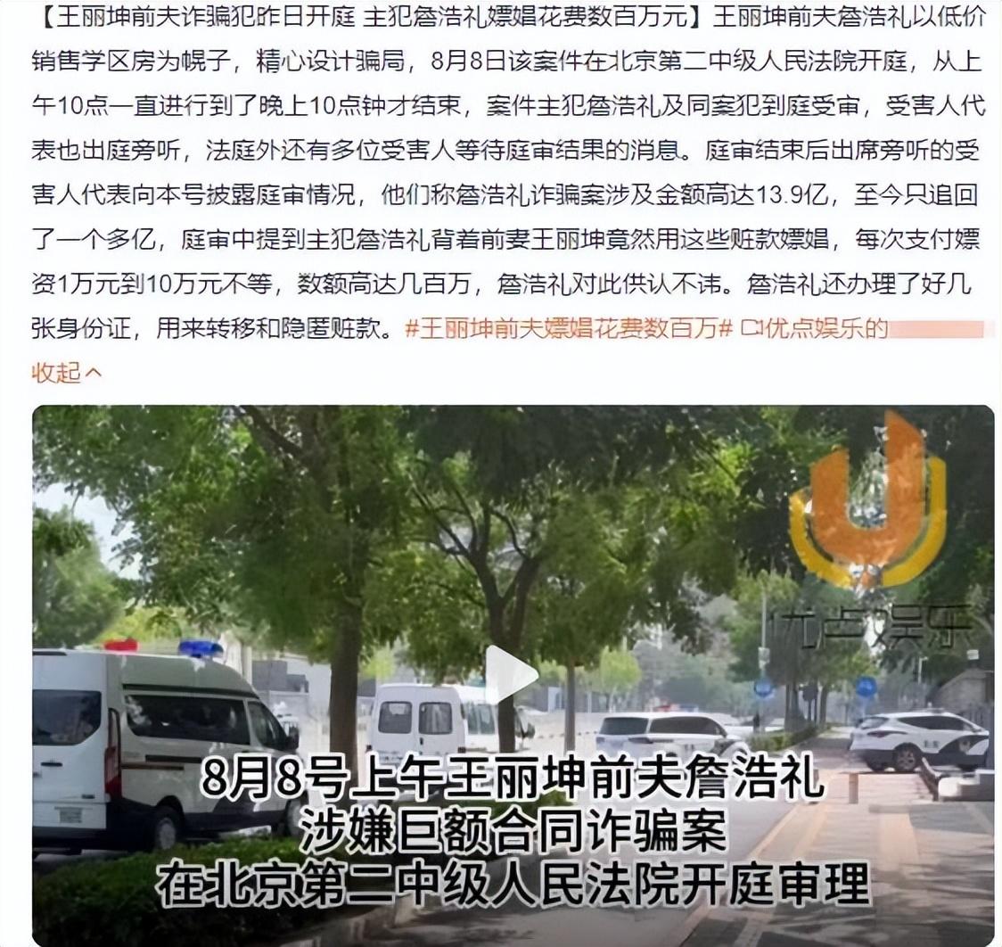 转载:https://www.toutiao.com/article/7401080502725247524/ 2024-08-09 18:14·搜狐娱乐 搜狐娱乐讯 9日,有娱乐博主爆料,王丽坤老公詹浩礼涉嫌诈骗案昨日开庭,疑似王丽坤老公案的受害人透露了庭审情况。庭审中提到主犯詹浩礼背着王丽坤用这些赃款嫖娼,每次支付嫖资1万元到10万元不等,数额高达几百万,詹浩礼对此供认不讳。詹浩礼还办理了好几张身份证,用来转移和隐匿赃款。视频加载中...