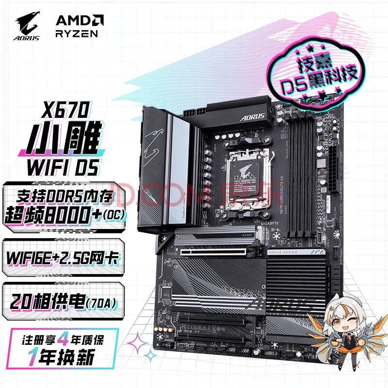 技嘉(GIGABYTE)小雕WIFI X670 AORUS ELITE AX WIFI6主板DDR5 支持AMD CPU AM5 7950X3D/7900X3D/7800X3D