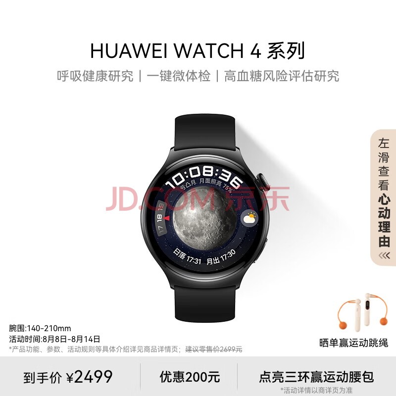 华为【送健康送男友】WATCH 4华为手表智能手表呼吸健康研究一键微体检华为运动手表幻月黑 男女表