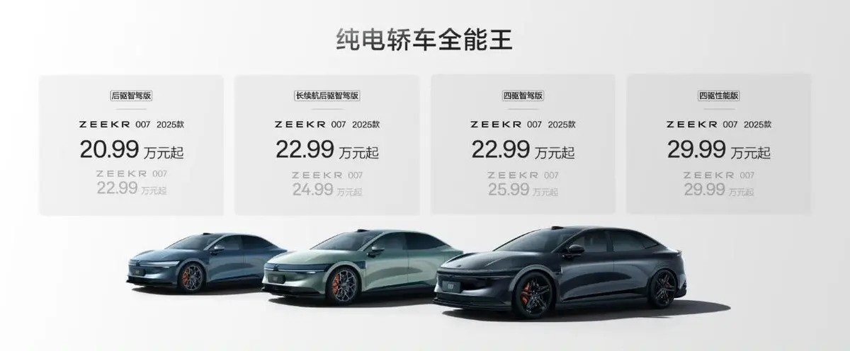在动力系统方面,极氪 007 四驱版的0-100km/h加速时间由3.5秒提升至3.4秒,后驱版车型的0-100km/h加速时间由5.4秒提升至5.0秒。