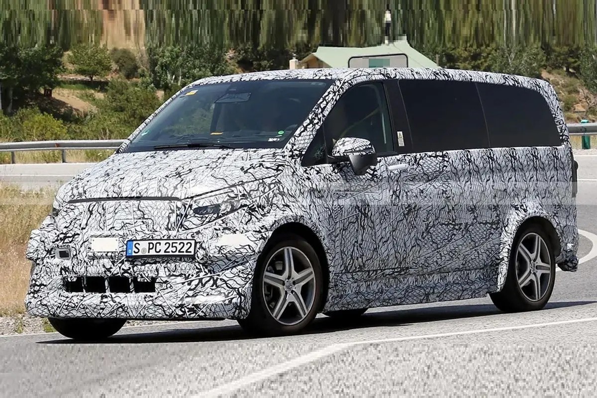 奔驰全新纯电MPV V级实车谍照近日曝光,预计将在2026年发布。新车外观设计上进行了精心打造,采用了封闭式中网设计和锐利的LED头灯组,与现款EQV相似。车身侧面简约方正,突出的轮拱设计让整车看起来更有力量感。