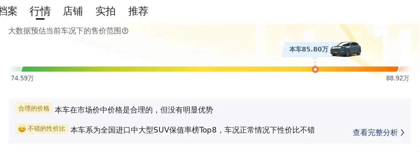 现在我们为大家带来一辆二手Cayenne 2023款 Cayenne 3.0T 铂金版。这款SUV定位于中大型级别,并于2023年6月在合肥上牌,目前没有过户记录。该车表显里程为1.57万公里,新车含税价为93.37万,二手车报价则为85.80万,相当于开一年便宜了7.57万。