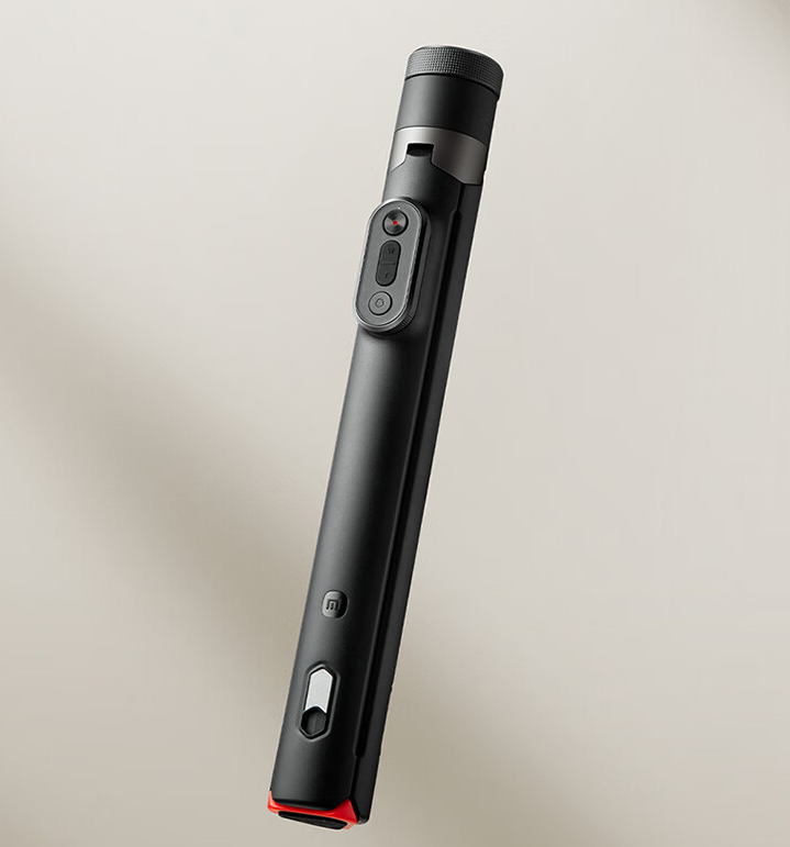 该产品还配备了一个多功能蓝牙遥控器,可以无线控制相机、切换摄影摄像模式、遥控变焦、前后摄切换等功能。遥控器内置在手柄中,并且可以快速启动相机。