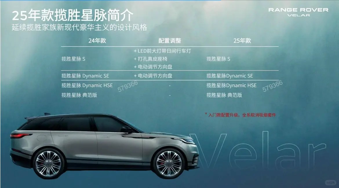 近日,我们得知2025款路虎揽胜星脉即将上市,并将提供四款车型供消费者选择。新车在外观与内饰设计上并未进行显著改动,而是将重点放在配置的优化与调整上。据了解,入门款的S和Dynamic SE车型将迎来配置升级,旨在提升驾驶体验与乘坐舒适性。同时,为响应环保与健康趋势,全系车型将取消吸烟套件,包括烟灰缸与点烟器。
