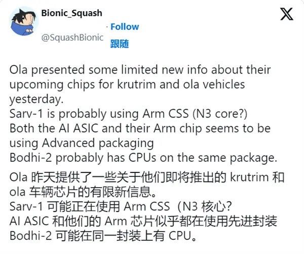 据最新报道,印度汽车制造商Ola宣布计划于2026年推出首款自研AI芯片。这款芯片将采用ARM架构,并由Ola Electric负责研发。虽然Ola并未透露该AI芯片的具体产品线,但已展示了包括Bodhi系列AI芯片、Sarv-1云原生CPU和Ojas边缘AI芯片在内的几款产品。