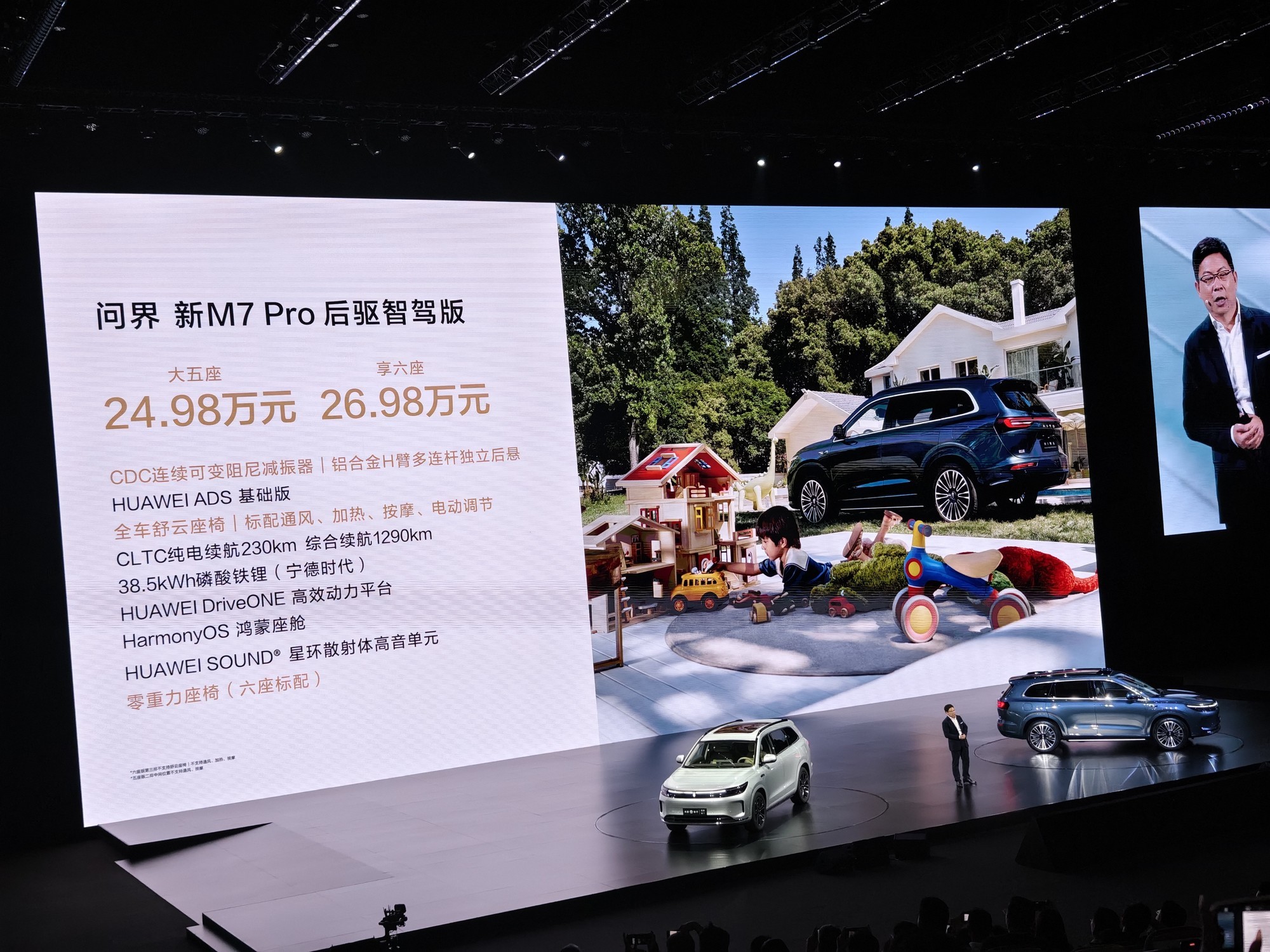 配置上,问界新M7 Pro升级CDC连续可变阻尼减振器,驾乘更稳定。设计采用全新家族化前脸设计,外观更时尚。内饰升级舒云座椅,材质更顺滑,搭配舒云头枕,乘坐更舒适。新增沙滩椅模式,双人随时躺平。动力方面,新车搭载HUAWEI DriveONE纯电驱增程平台,百公里加速4.8s,百公里制动距离34.2m,麋鹿测试成绩75.5km/h。