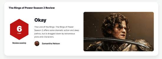 《指环王:权力之戒》第二季在IGN的评价已经出炉,得分为6分。