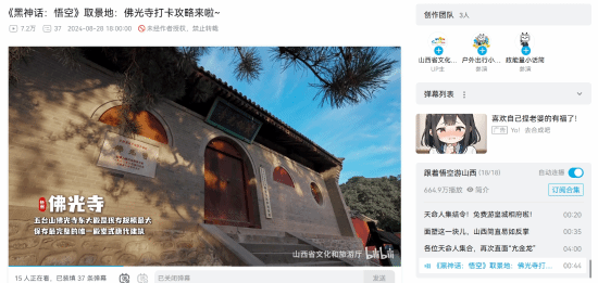 《黑神话:悟空》的火爆不仅带动了游戏行业的发展,同时也为山西省带来了机遇。近日,山西省文化和旅游厅官方B站账号发布了一系列关于山西府城玉皇庙和佛光寺的内容讲解和打卡攻略。