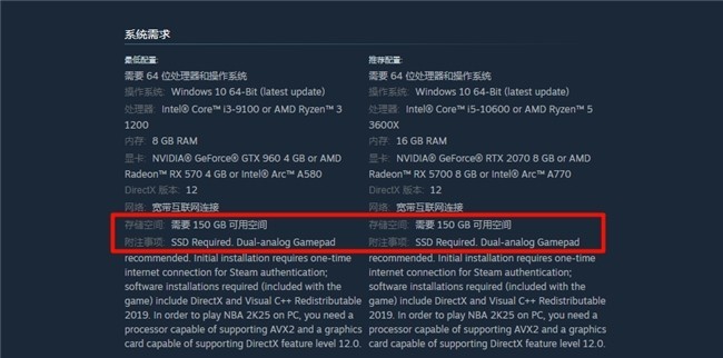 以近期发布的游戏距离,《黑神话:悟空》PC版要求130GB、PS5版要求104GB、《NBA2K25》PC版要求150GB、《战锤40K:星际战士2》要求75GB,并且这些游戏无一例外的都要求SSD存储作为基础配置。对于玩家来说,这不仅影响了下载和安装所需的时间,还对他们的硬件设备提出了更高的要求,尤其是在存储容量和性能方面。