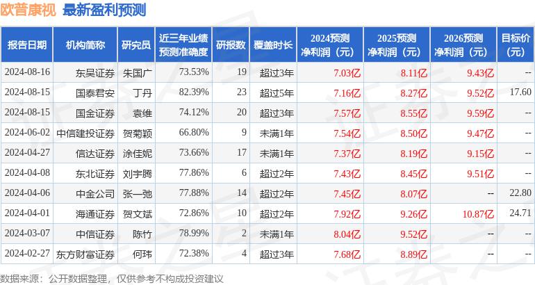 欧普康视2024年中报显示,公司主营收入8.83亿元,同比上升13.21%;归母净利润3.24亿元,同比上升4.42%;扣非净利润2.83亿元,同比上升6.72%;其中2024年第二季度,公司单季度主营收入4.19亿元,同比上升10.56%;单季度归母净利润1.31亿元,同比下降4.37%;单季度扣非净利润1.16亿元,同比上升0.45%;负债率12.62%,投资收益4318.46万元,财务费用226.37万元,毛利率73.77%。