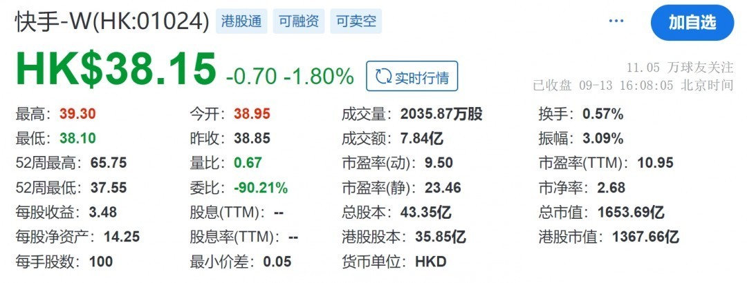 然而,尽管快手进行了频繁的股票回购操作,但其股价仍未能抵挡颓势。截至收盘,快手股价下跌1.8%,达到38.15港元,并且总市值约为1653.69亿港元。值得注意的是,今年以来,该股股价已累计下跌近28%。