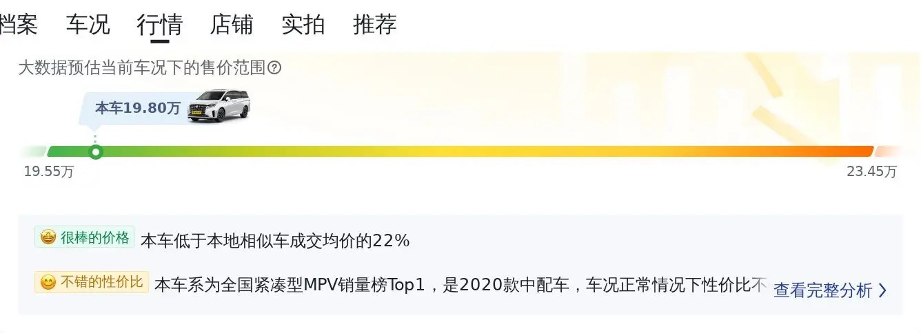 根据目前的二手车行情来看,别克GL8的二手车价格大致在19.55万至23.45万之间。根据估算,这辆车年均综合用车成本大约在每年1.5万元左右。