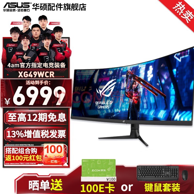 华硕 玩家国度ROG 电脑显示器 游戏电竞 31.5英寸曲面显示屏144hz显示器2K HDR Aura神光同步 XG32VQR