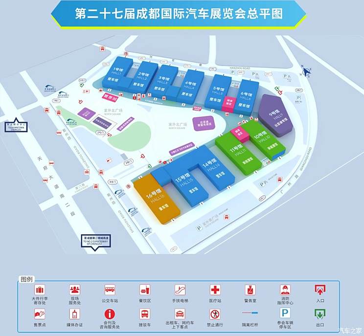 近日,第27届成都国际车展的展馆图正式公布。本次车展将于8月30日至9月8日在四川成都中国西部国际博览城举办,共设有12个展厅和1个室外活动区。需要注意的是,这些展馆编号不是连续的,并且有些展馆未布置展车。