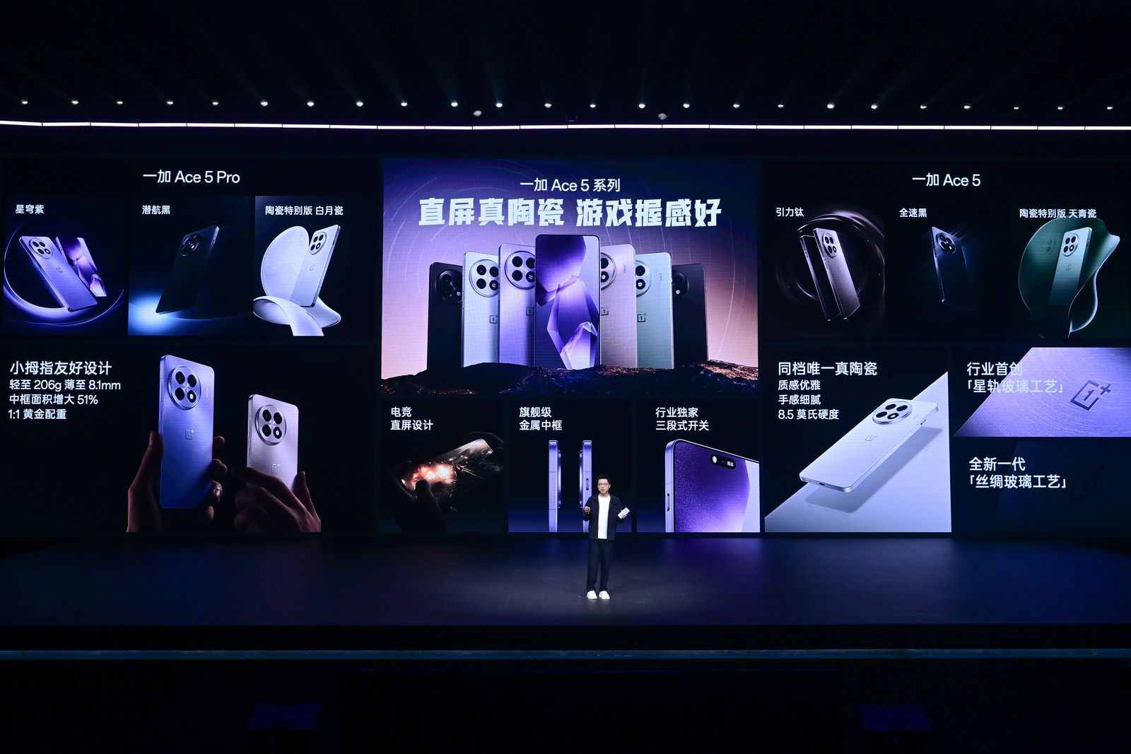 2024年12月26日,一加正式发布游戏体验天花板一加Ace5系列——一加Ace5 及一加Ace5 Pro。一加Ace5 系列深度聚焦性能和游戏体验,搭载骁龙8系旗舰平台和行业首个自研芯片级游戏技术「风驰游戏内核」,带来持久满帧的流畅游戏体验。一加Ace5 系列采用全新直屏设计以及同档唯一陶瓷机身,首发1.5K第二代东方屏,搭载行业最高能量密度冰川电池,还拥有旗舰影像和饱受好评的“机圈德芙”ColorOS15 等众多行业领先的硬件和功能配置,带来远超同档的旗舰体验。传奇电竞选手一加Ace首席电竞官UZI简自豪也出席了发布会,一起见证电竞传奇一加Ace5 系列正式登场。