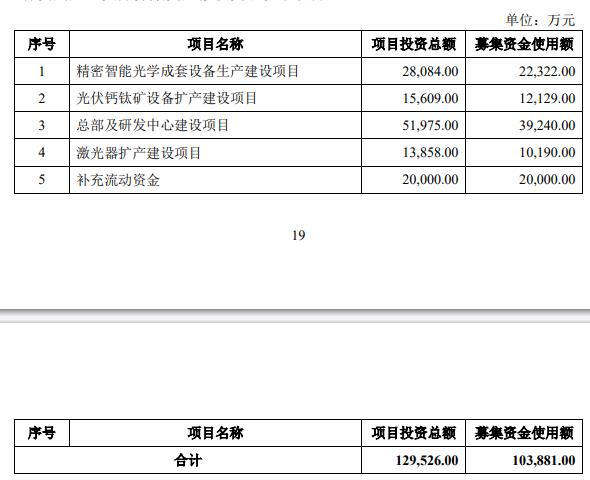 杰普特7月5日发布2023年度向特定对象发行A股股票预案(修订稿)。本次发行的募集资金总额(含发行费用)不超过103,881.00万元,扣除发行费用后,实际募集资金拟投资于精密智能光学成套设备生产建设项目、光伏钙钛矿设备扩产建设项目、总部及研发中心建设项目、激光器扩产建设项目、补充流动资金。