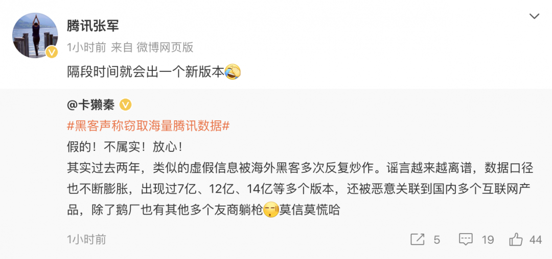 同时,腾讯公关总监张军也转发了相关微博并指出,“隔段时间就会出一个新版本”。他提醒用户不要相信这些谣言,并提醒其他友商也要警惕类似情况发生。这位专业人士认为这类谣言除了针对腾讯之外,其他公司也可能成为目标。因此,我们提醒所有用户保持警惕,不要轻信任何未经证实的网络传言。