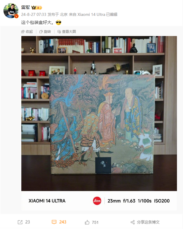 8月27日,小米CEO雷军在其社交媒体上晒出了《黑神话:悟空》实体版,并称赞其包装盒的大小。据悉,这款实体收藏版限量10000套,内含WeGame豪华版游戏激活码以及1:6可动主角模型等。由于游戏的火热,该实体收藏版的价格也在二手市场飙升,从原价1998元炒到6000元不等。