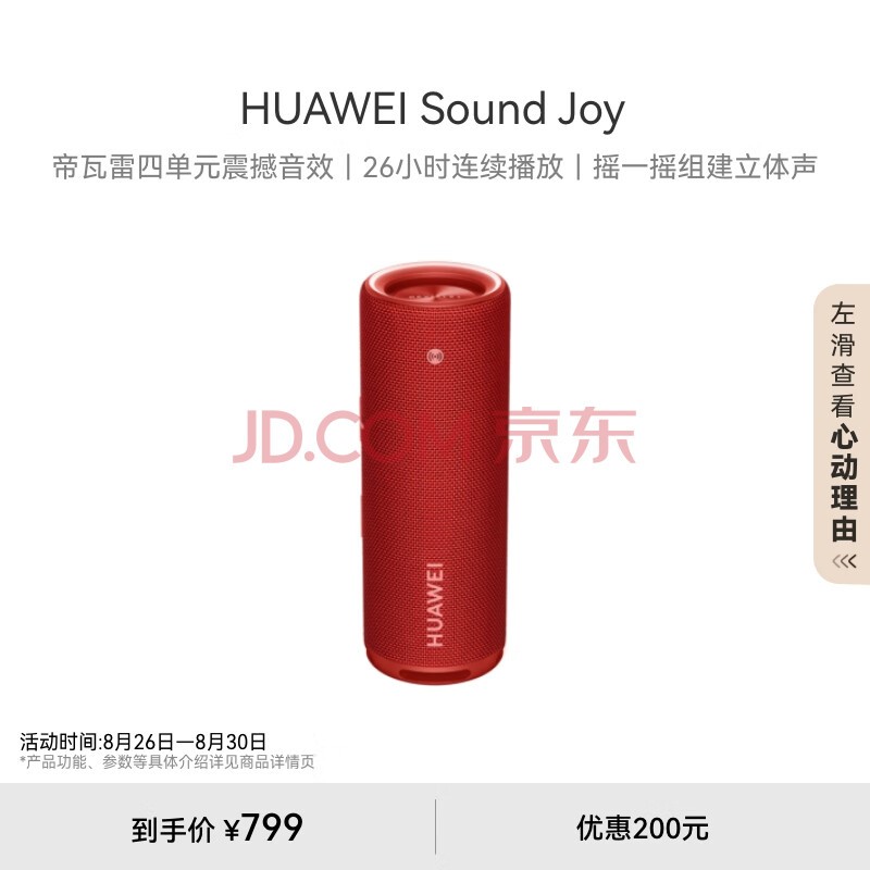华为Sound Joy 便携式智能蓝牙音箱 电脑音响 两台组建立体声 26小时长续航户外音箱 珊瑚红
