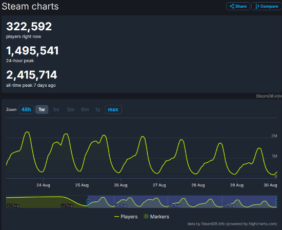 截至发稿时,Steam上的在线玩家数量为241万。随着越来越多的玩家通关游戏,Steam上的在线玩家数量明显下降。本人也在前天通关了一周目。考虑到这是一款单机游戏,在发售10天后仍能保持100万以上的在线玩家数量,这个成绩已经相当不错了。