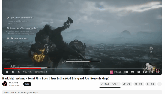 《黑神话:悟空》自上市以来备受玩家青睐,但其隐藏元素众多,许多玩家未能完全体验到真结局。因此,在网上出现了大量通过视频通关获取真结局的案例,播放量已超过200万次。