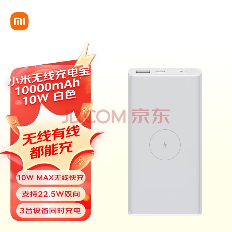 小米无线充电宝10000mAh移动电源10W 白色 适用小米苹果安卓redmi手机充电宝