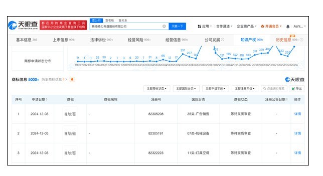 近日,天眼查知识产权信息显示,珠海格力电器股份有限公司已申请注册多枚“格力好强”的商标,涵盖广告销售、机械设备、灯具空调等多个国际分类。目前,这些商标均处于等待实质审查的阶段。这一举动再次彰显了格力电器在品牌建设和知识产权保护方面的坚定决心。