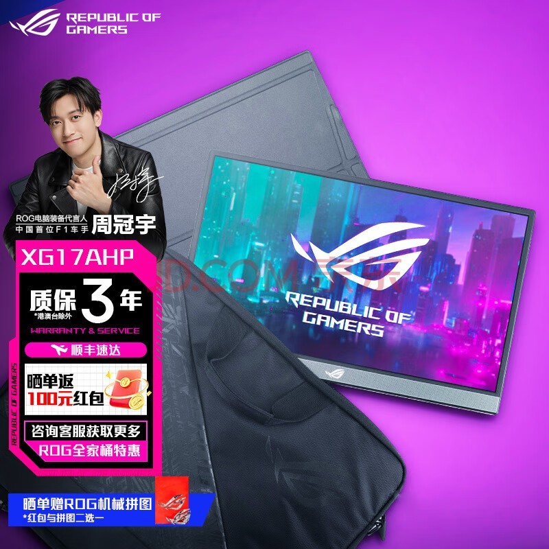 ROG XG17AHP幻镜 电竞便携显示器 240Hz IPS 超薄轻薄 自带电池即插即用