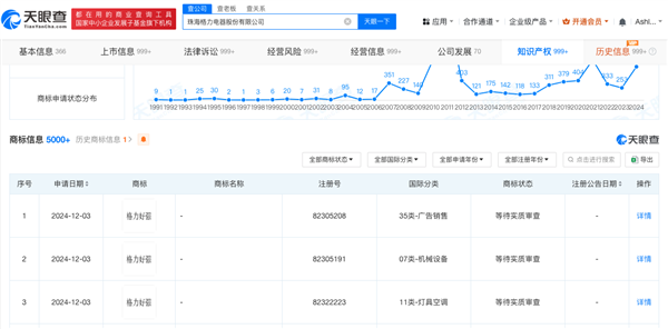 近日,珠海格力电器股份有限公司申请注册多枚“格力好强”商标。这些商标的国际分类涉及广告销售、机械设备、灯具空调。目前,这些商标的状态都是等待实质审查。